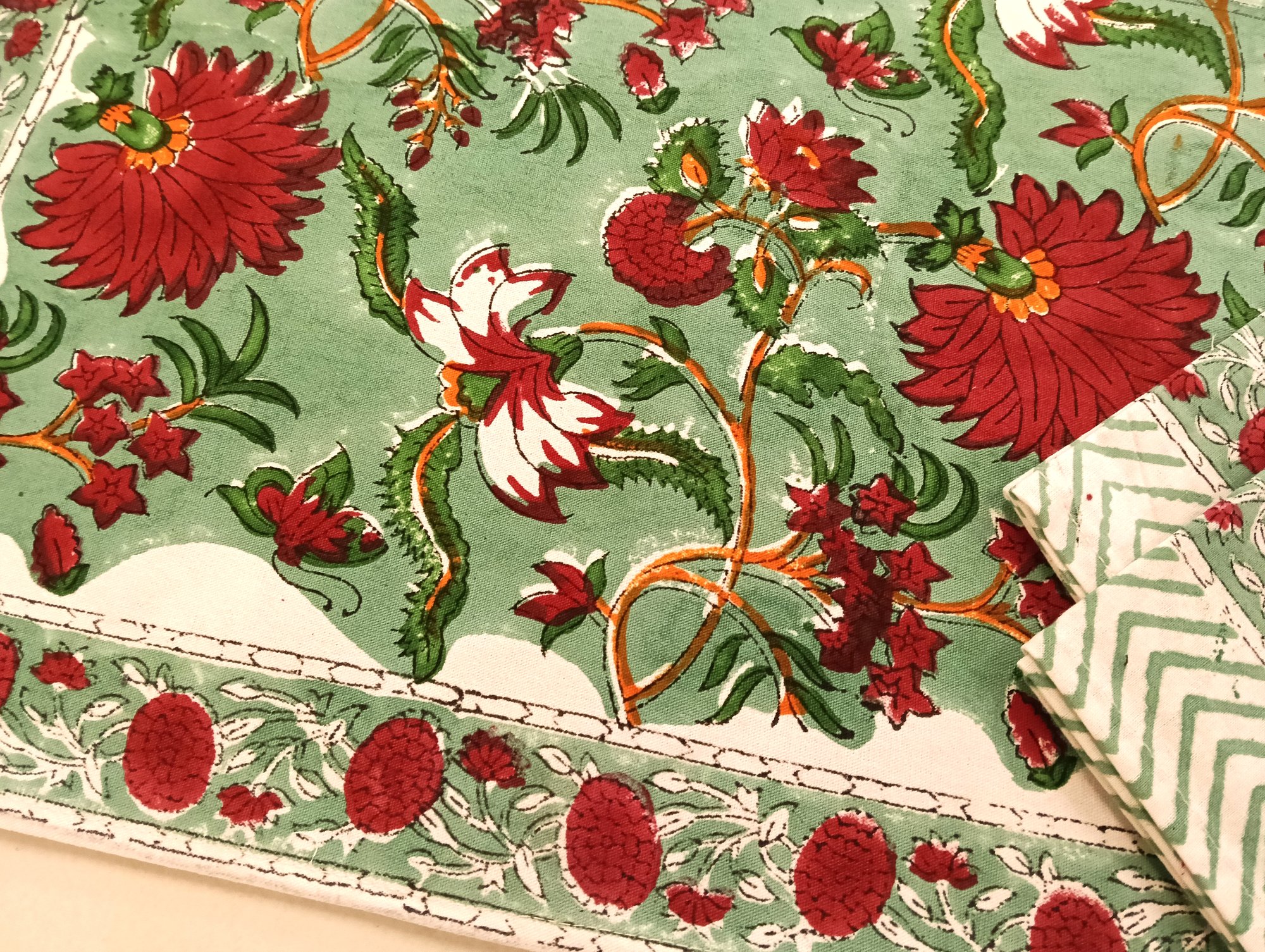 Ideal para el día a día. 100% algodón. Estampado a mano en la India con la técnica del block printing.