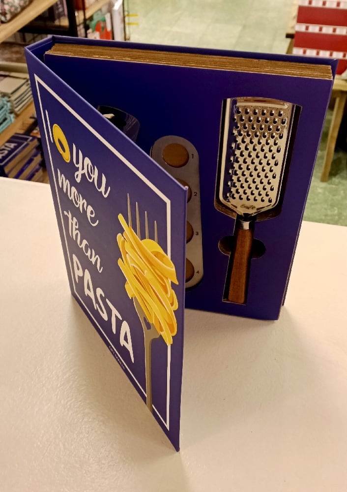 Set especial pasta. Se compone de un rallador de queso, unas pinzas para servir y un medidor de pasta.