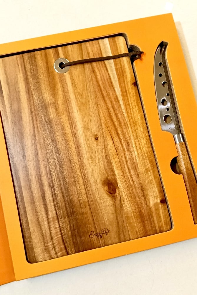 Set especial queso. Se compone de un cuchillo especial y una tabla de acacia.